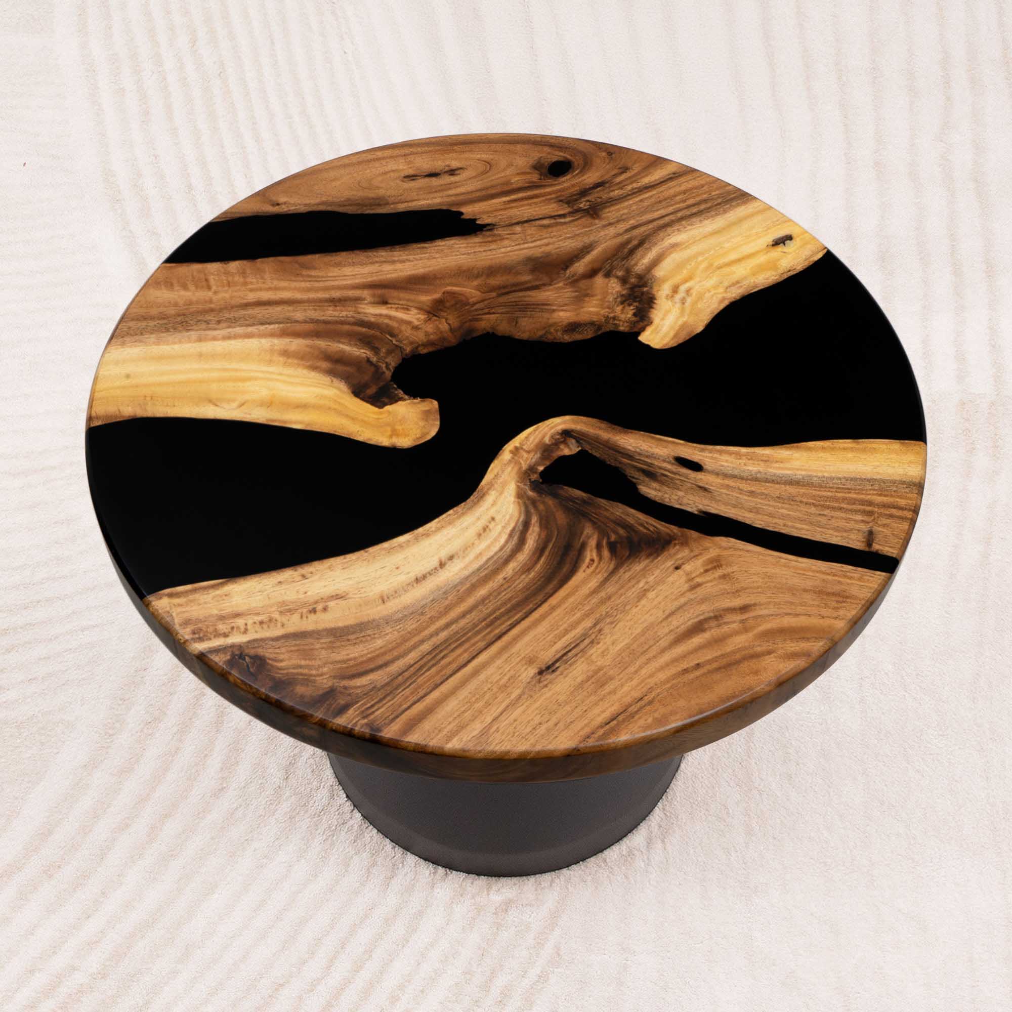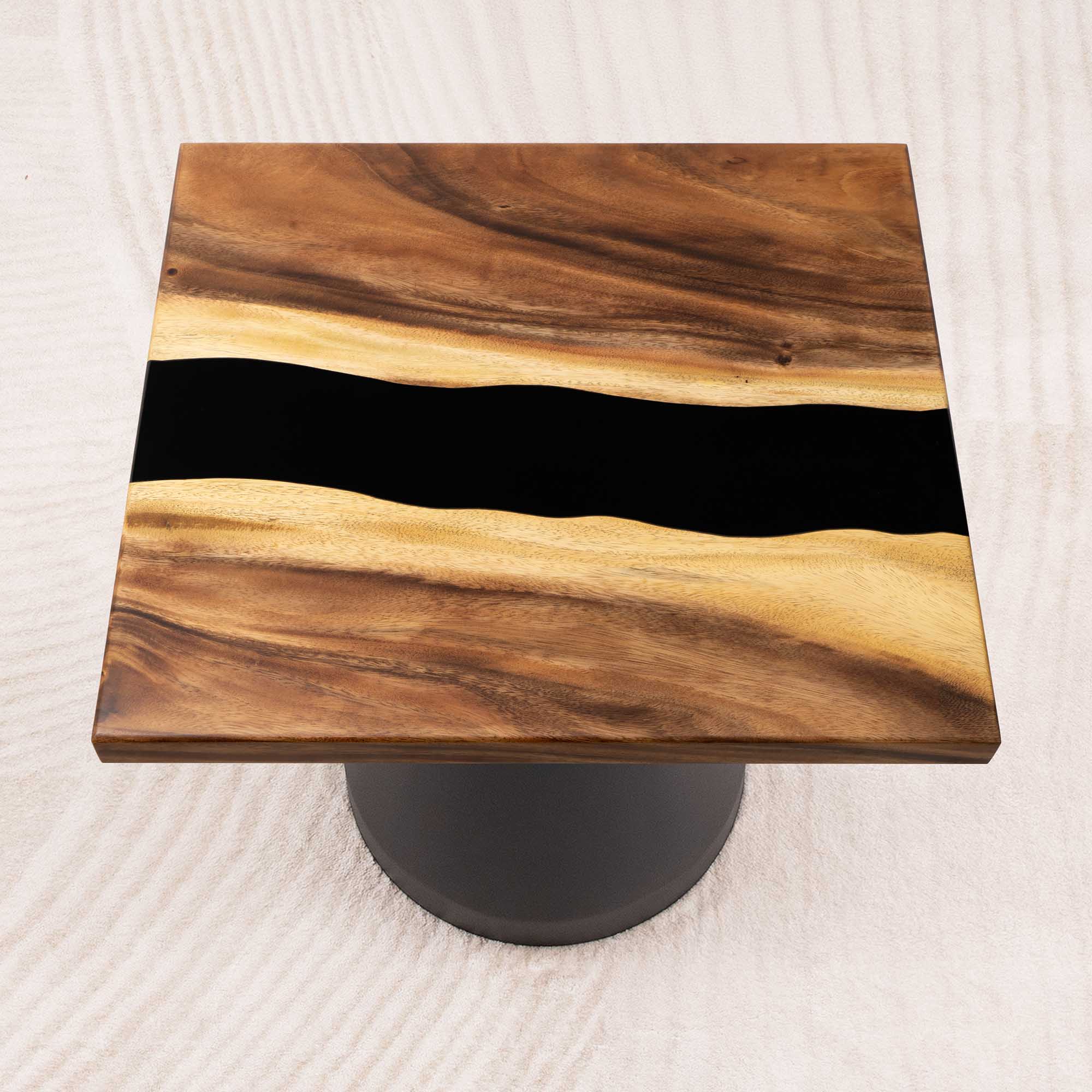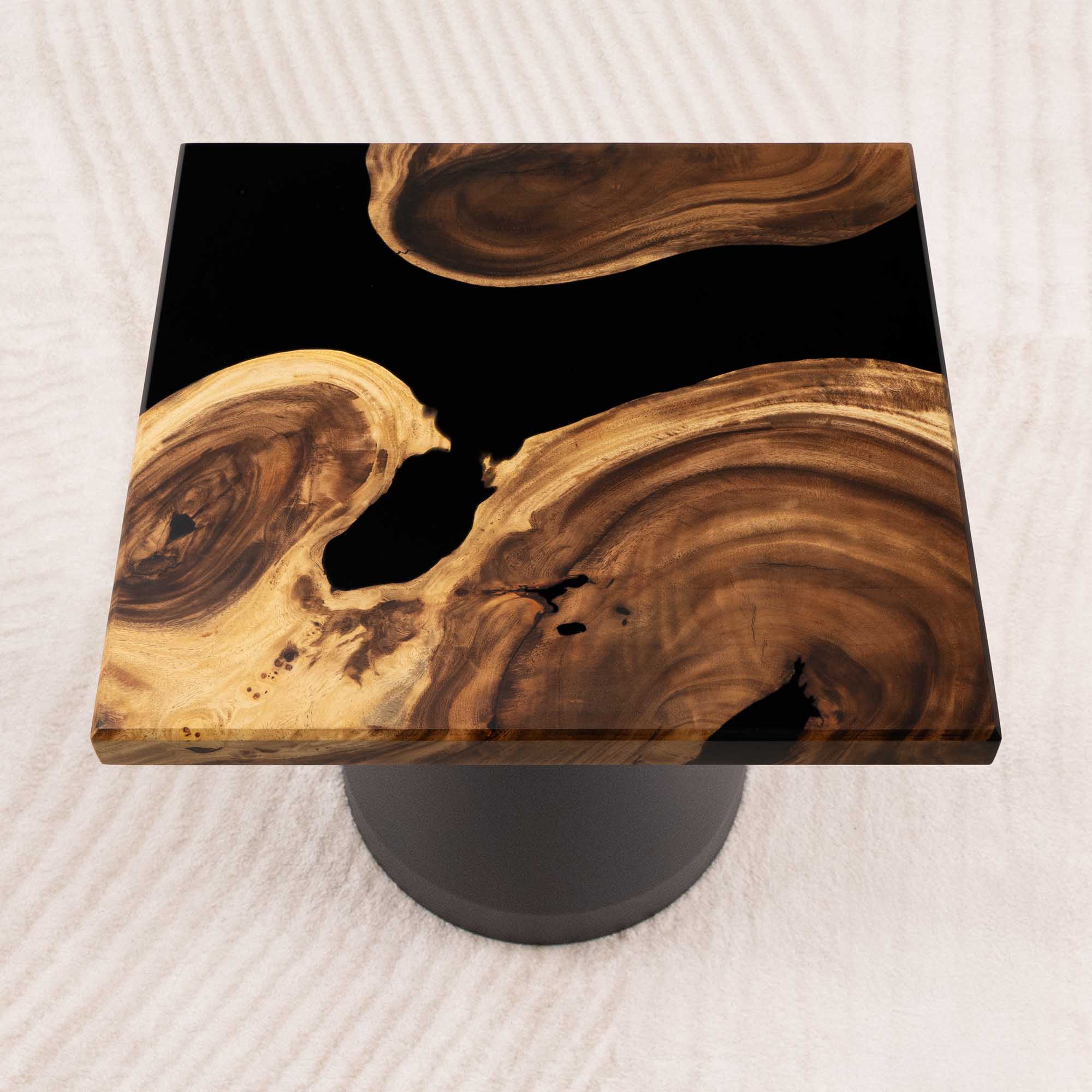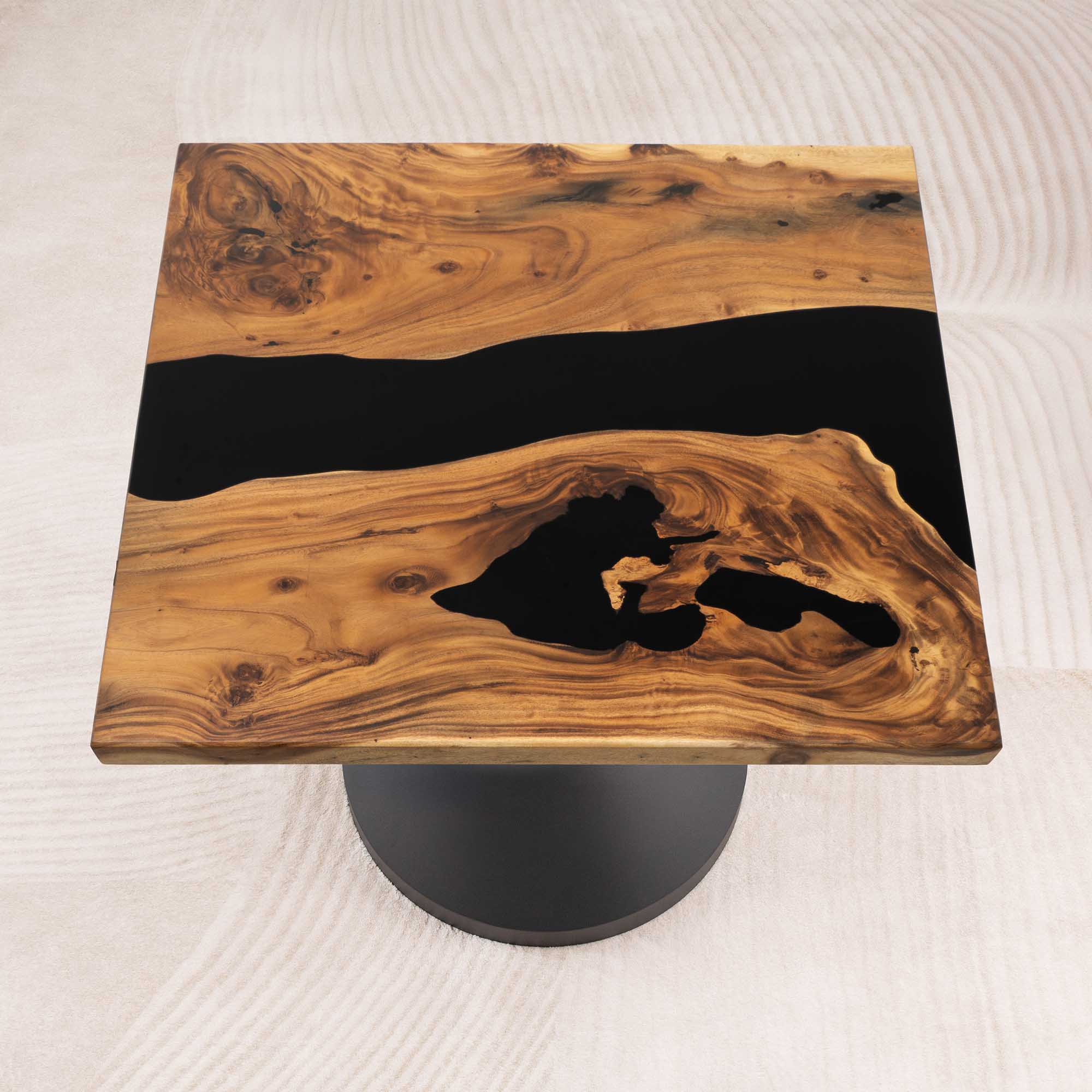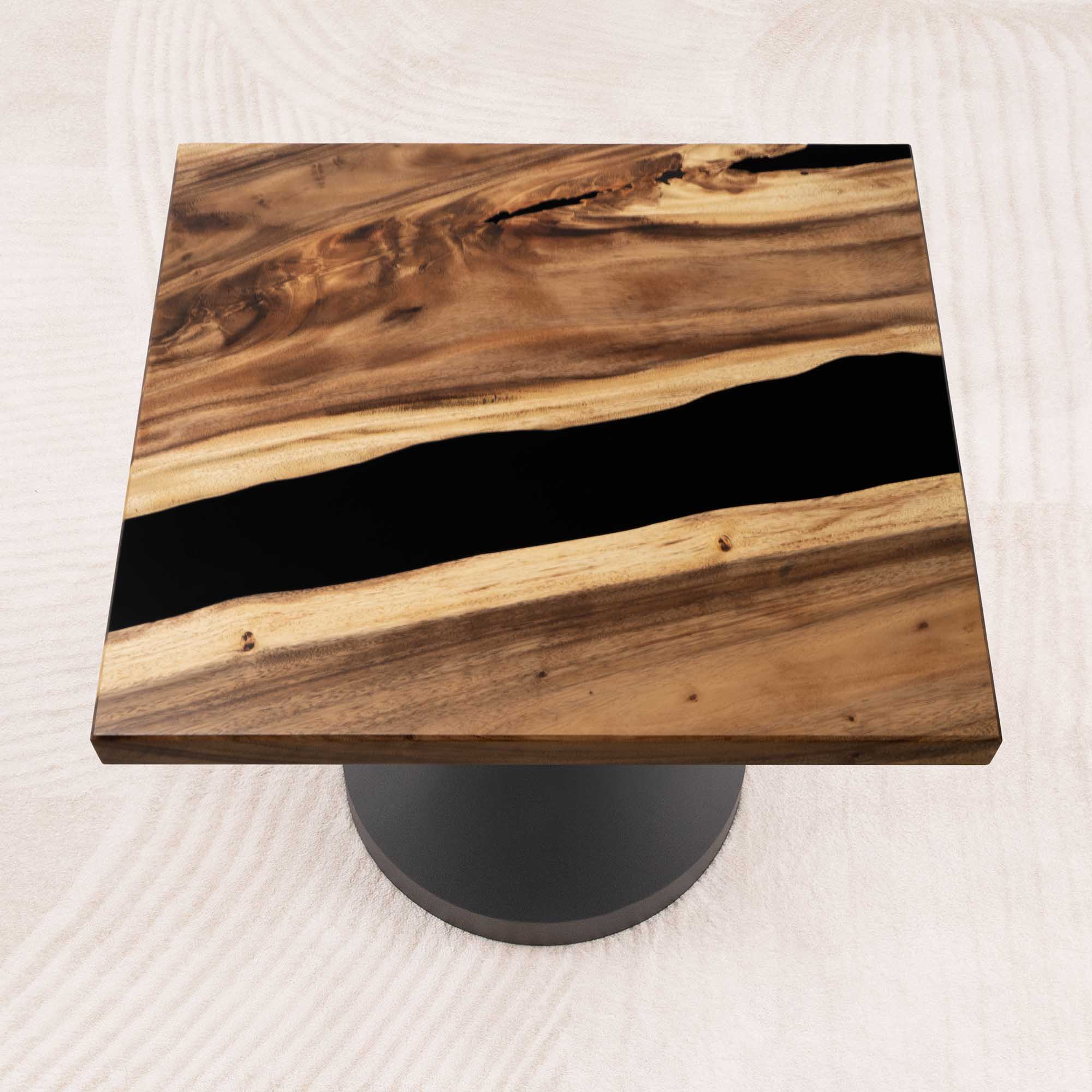 Whether you're browsing our collection of unique epoxy tables for a coffee table, dining table, or end table, our custom epoxy resin creations can meet all your needs. Each of our epoxy tables is a unique work of art, thanks to the natural variations in the selected wood pieces. These epoxy resin tables can be made in various dimensions to match your space and are supported by a high-quality metal base, ensuring superior stability for years.