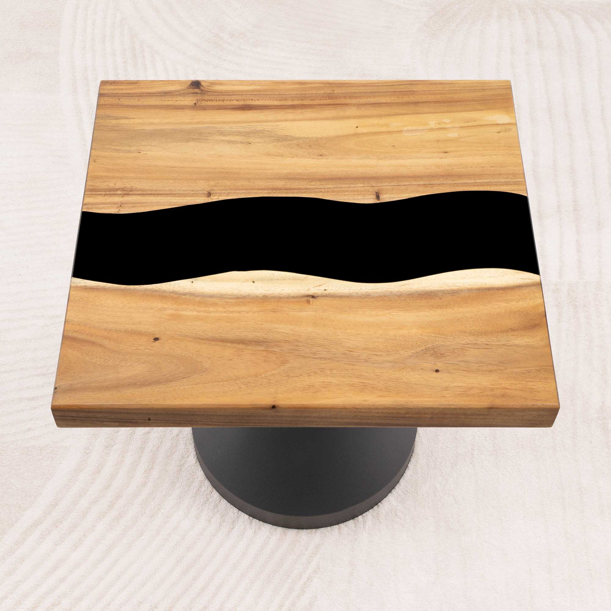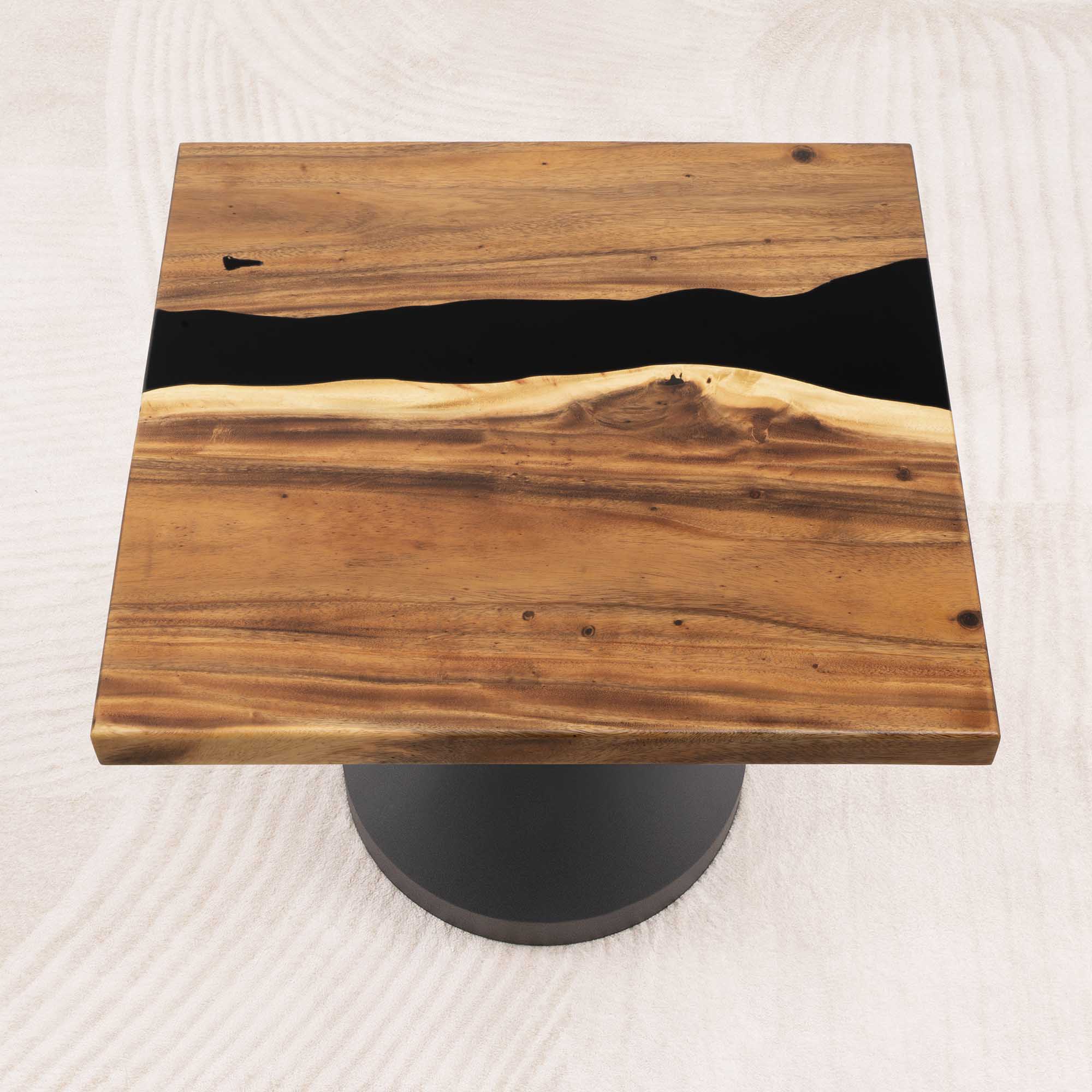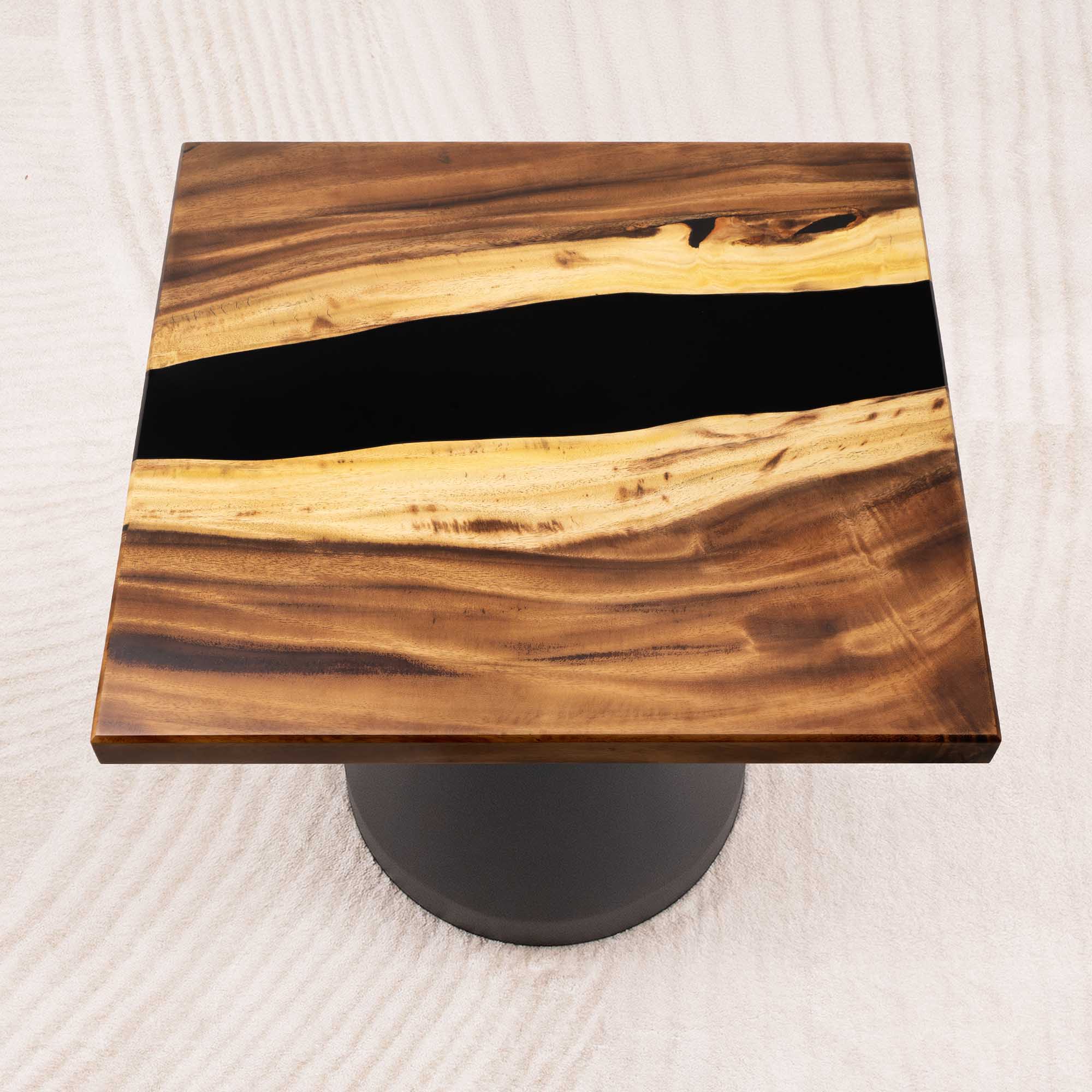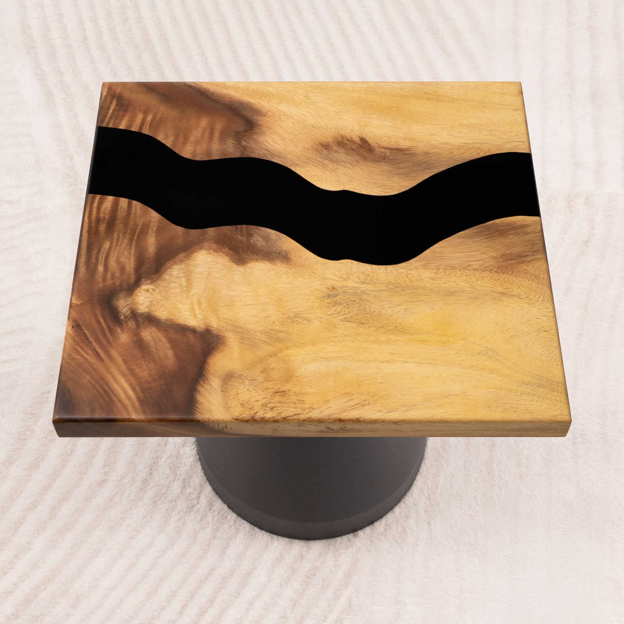 Whether you're browsing our collection of unique epoxy tables for a coffee table, dining table, or end table, our custom epoxy resin creations can meet all your needs. Each of our epoxy tables is a unique work of art, thanks to the natural variations in the selected wood pieces. These epoxy resin tables can be made in various dimensions to match your space and are supported by a high-quality metal base, ensuring superior stability for years.