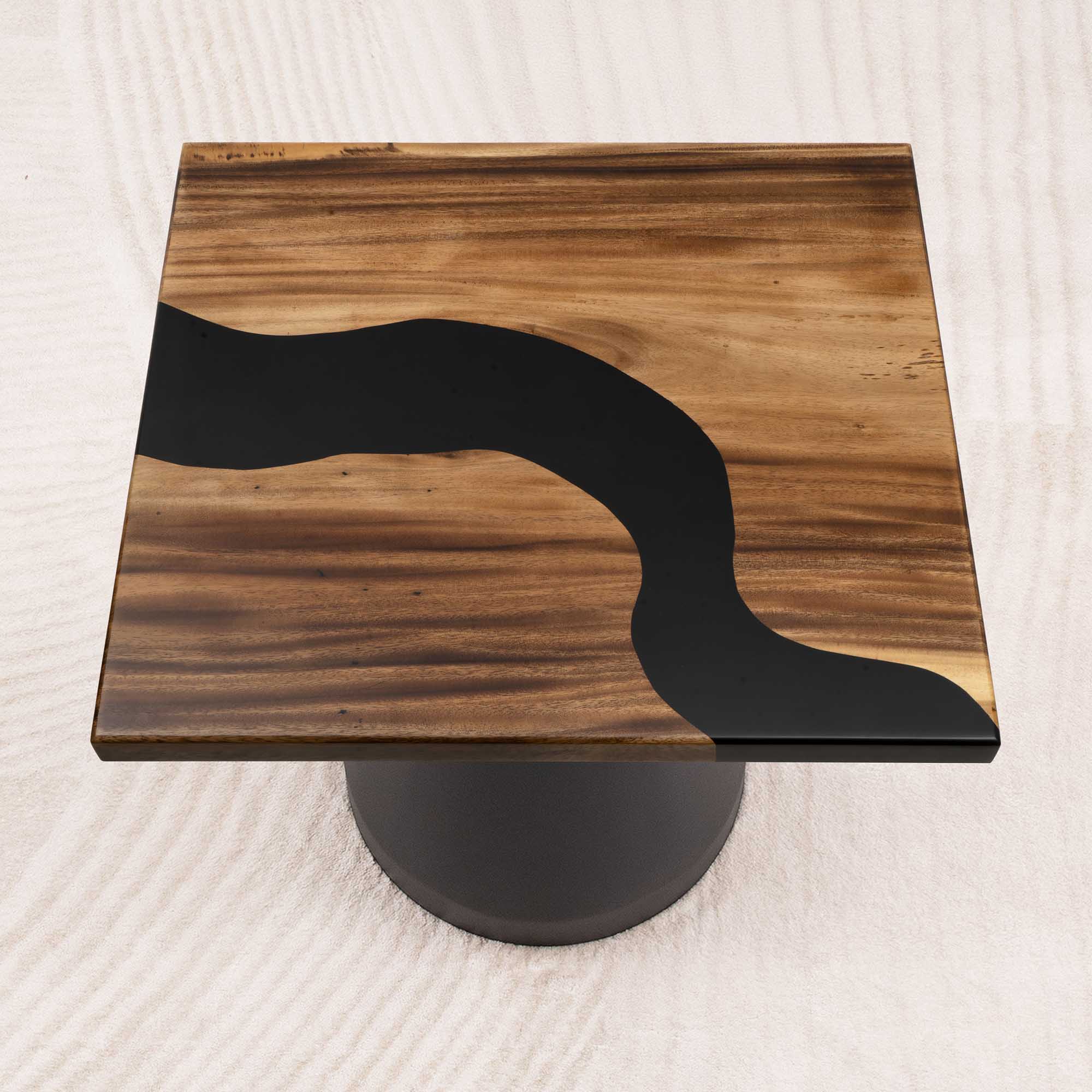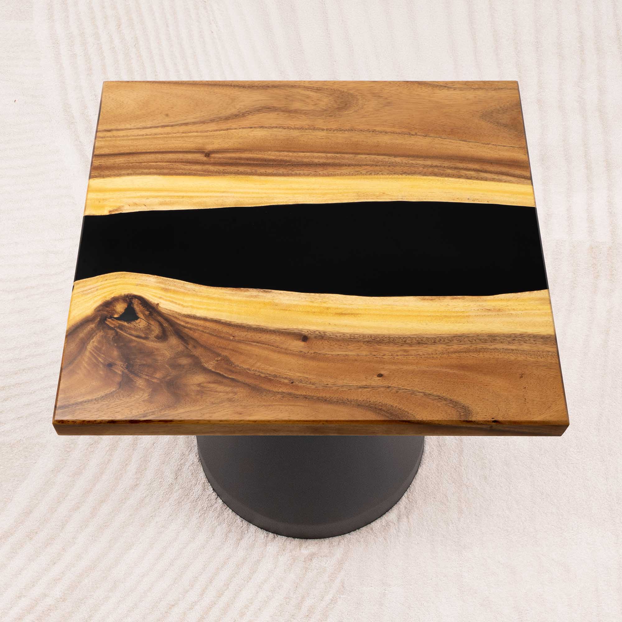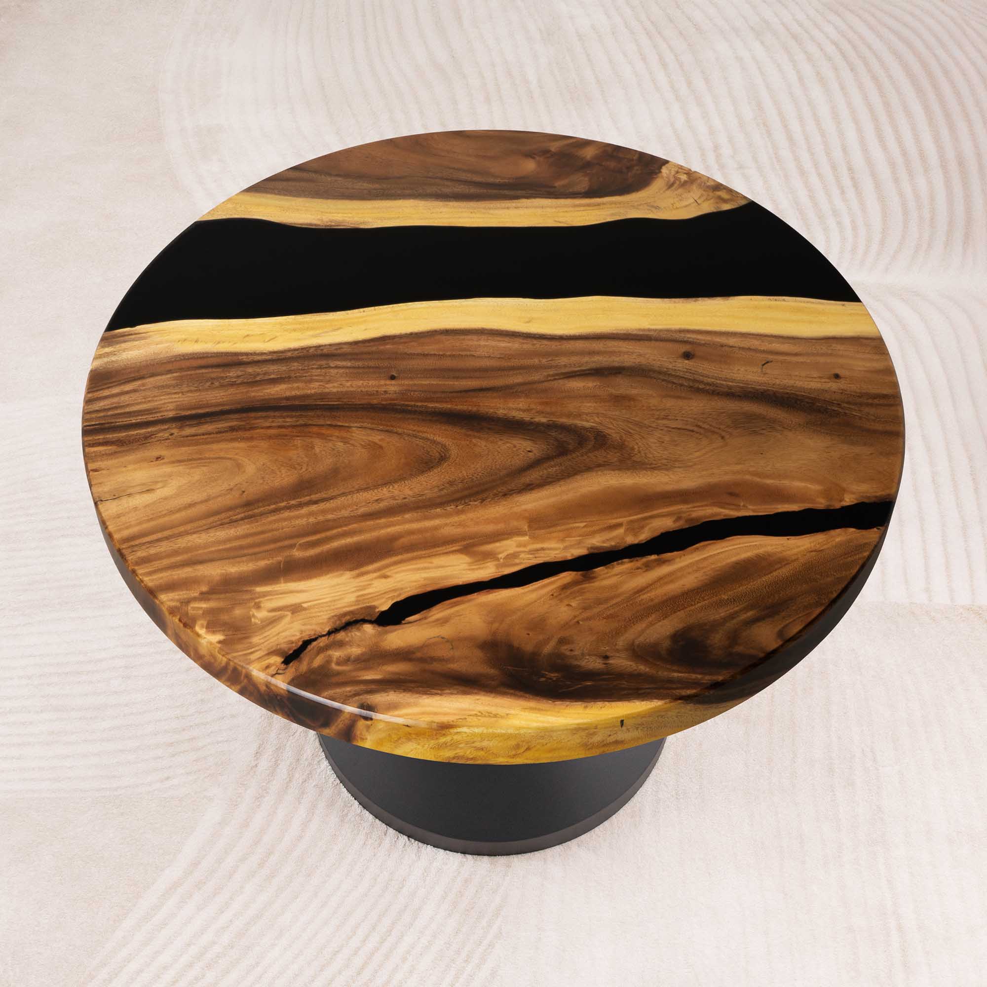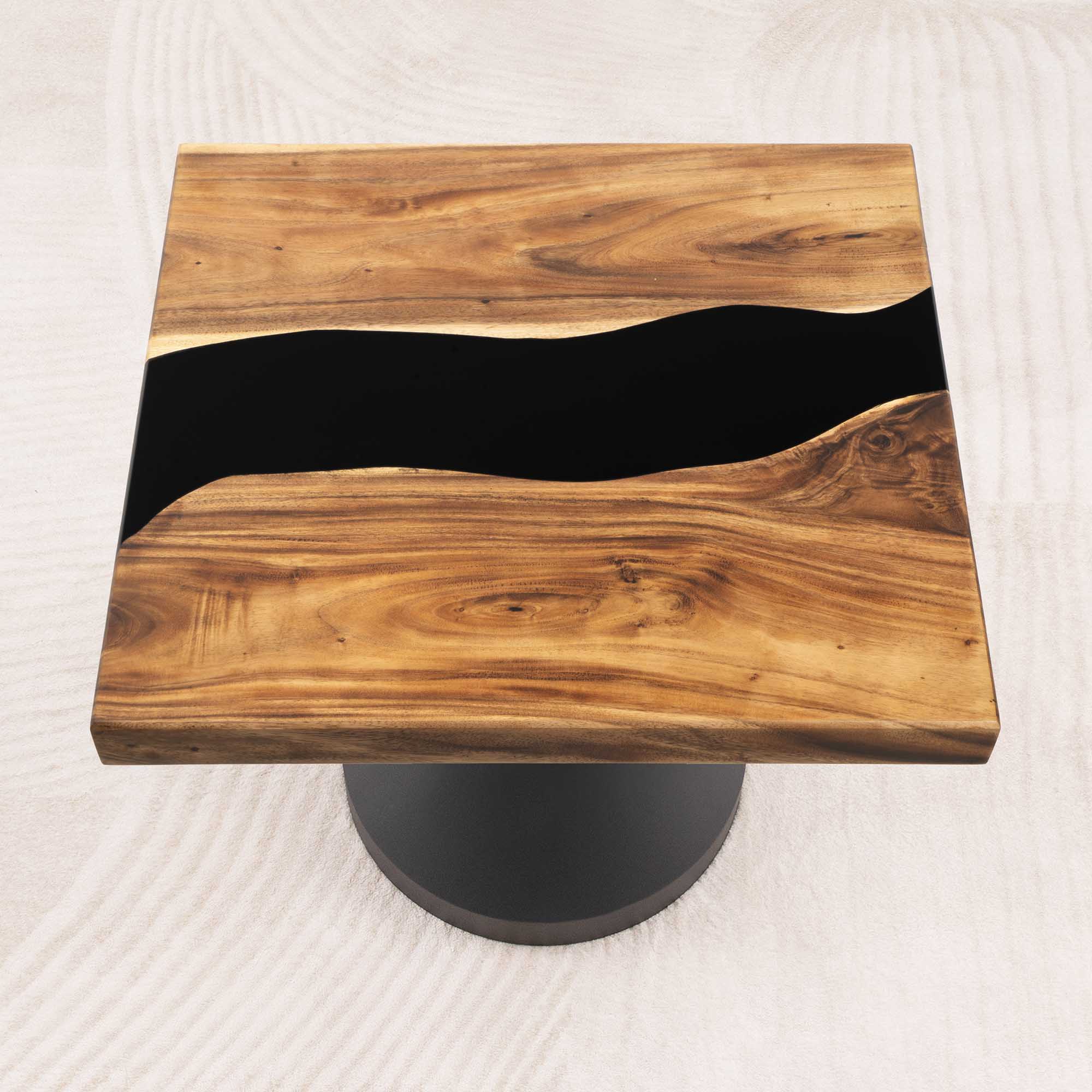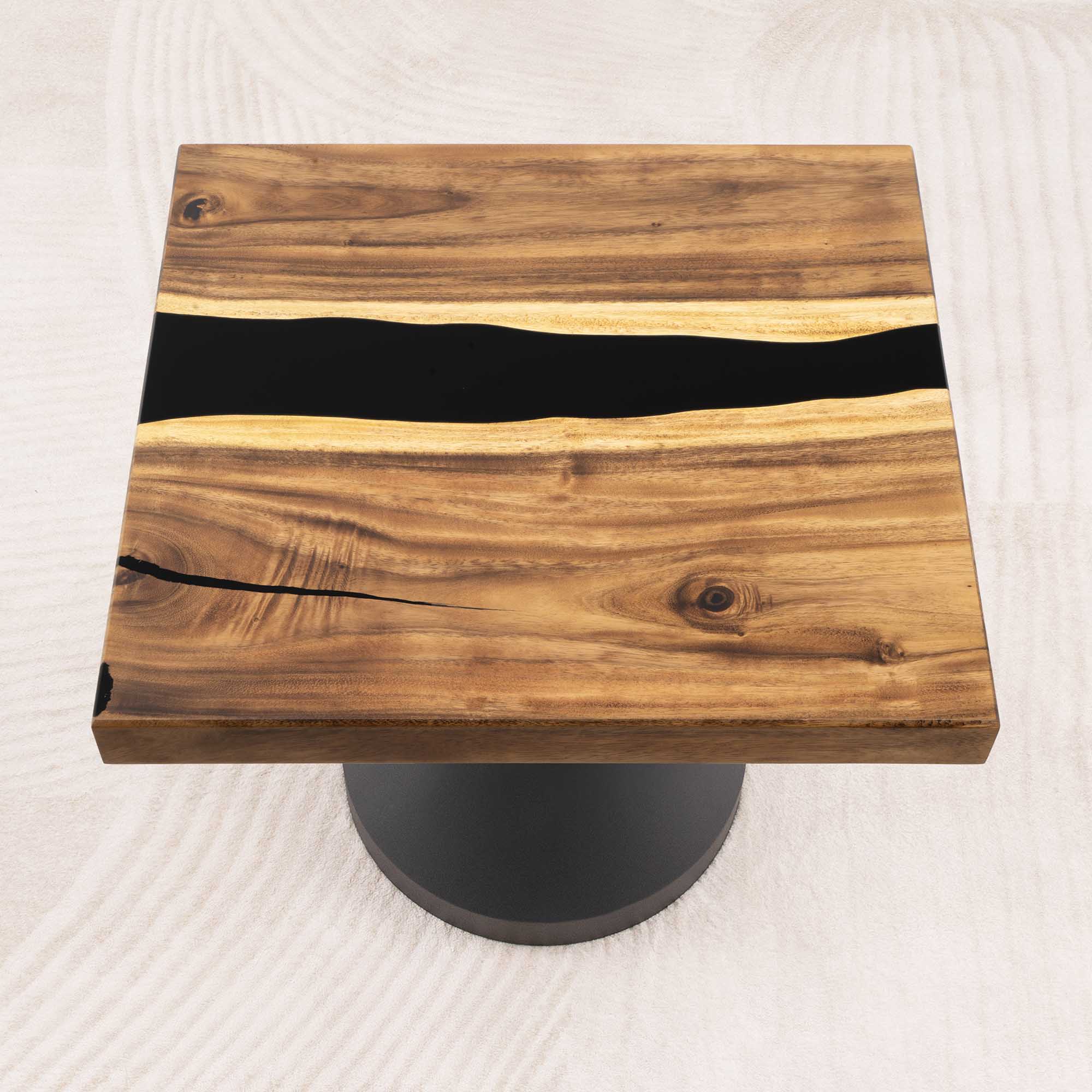 Whether you're browsing our collection of unique epoxy tables for a coffee table, dining table, or end table, our custom epoxy resin creations can meet all your needs. Each of our epoxy tables is a unique work of art, thanks to the natural variations in the selected wood pieces. These epoxy resin tables can be made in various dimensions to match your space and are supported by a high-quality metal base, ensuring superior stability for years.
