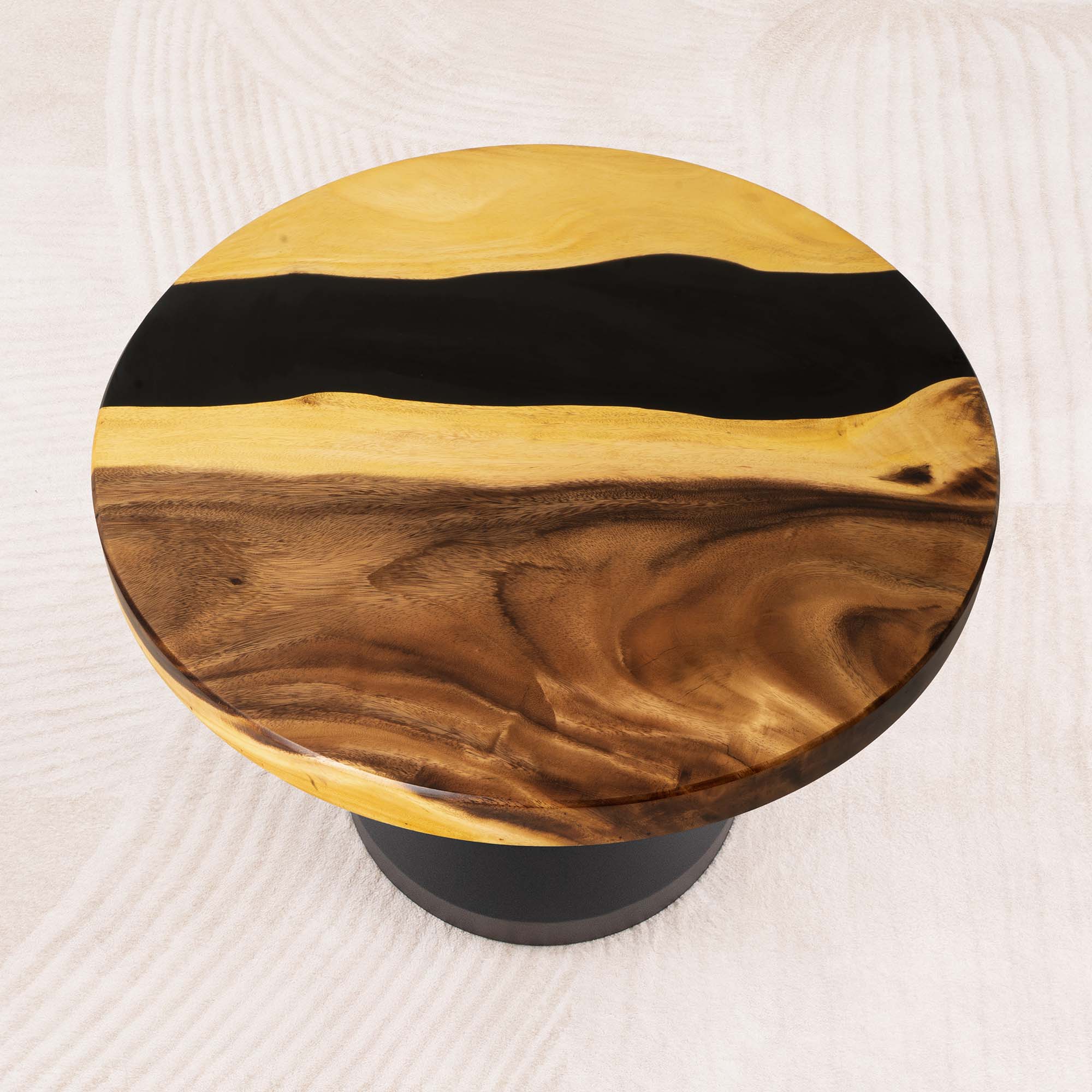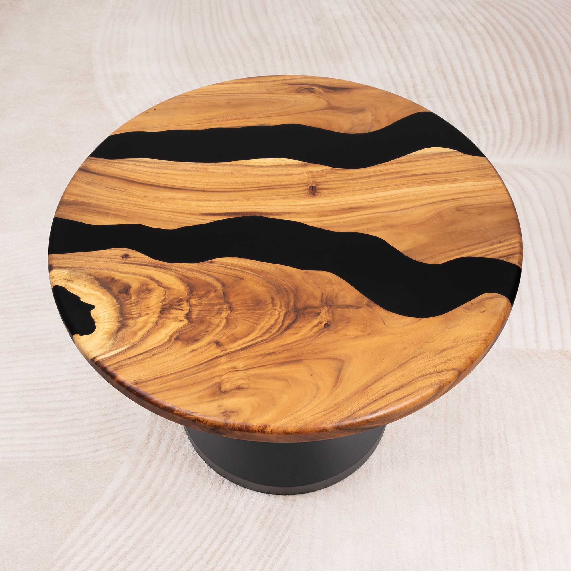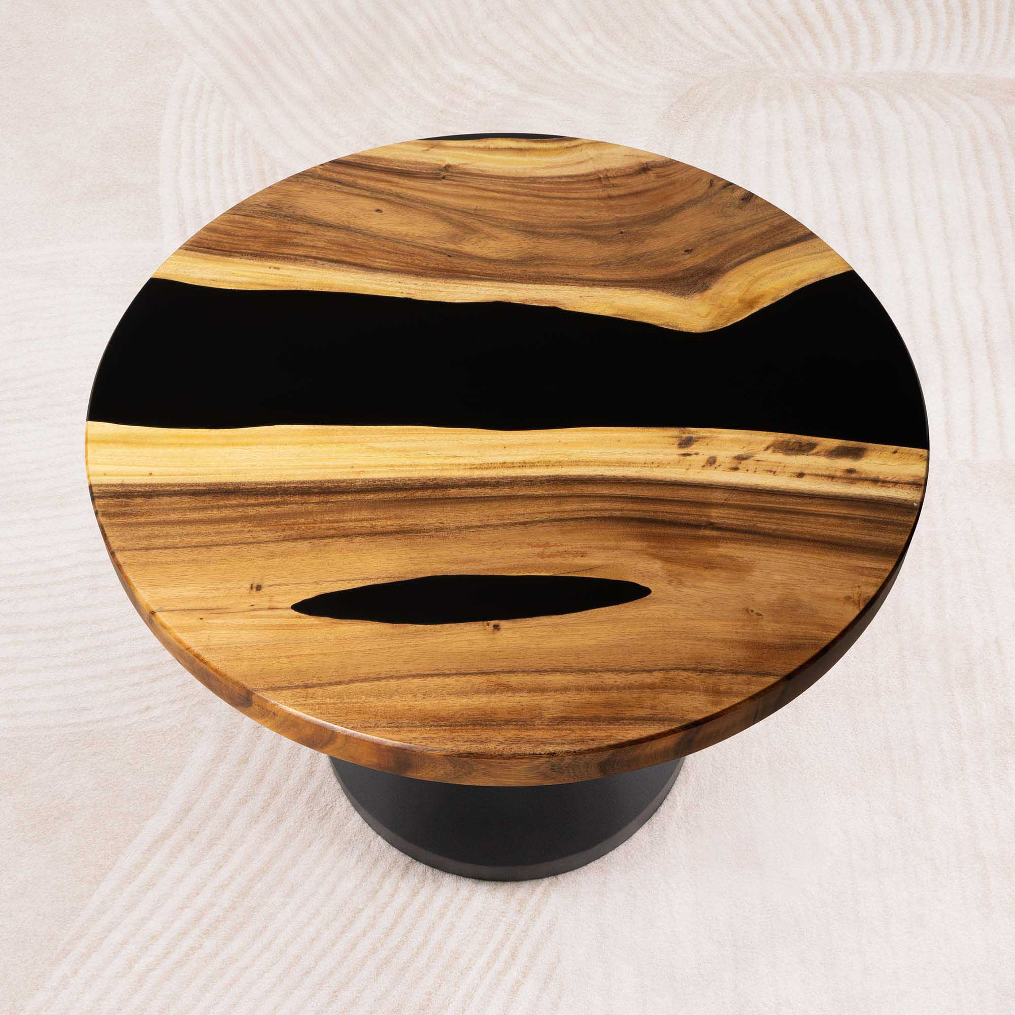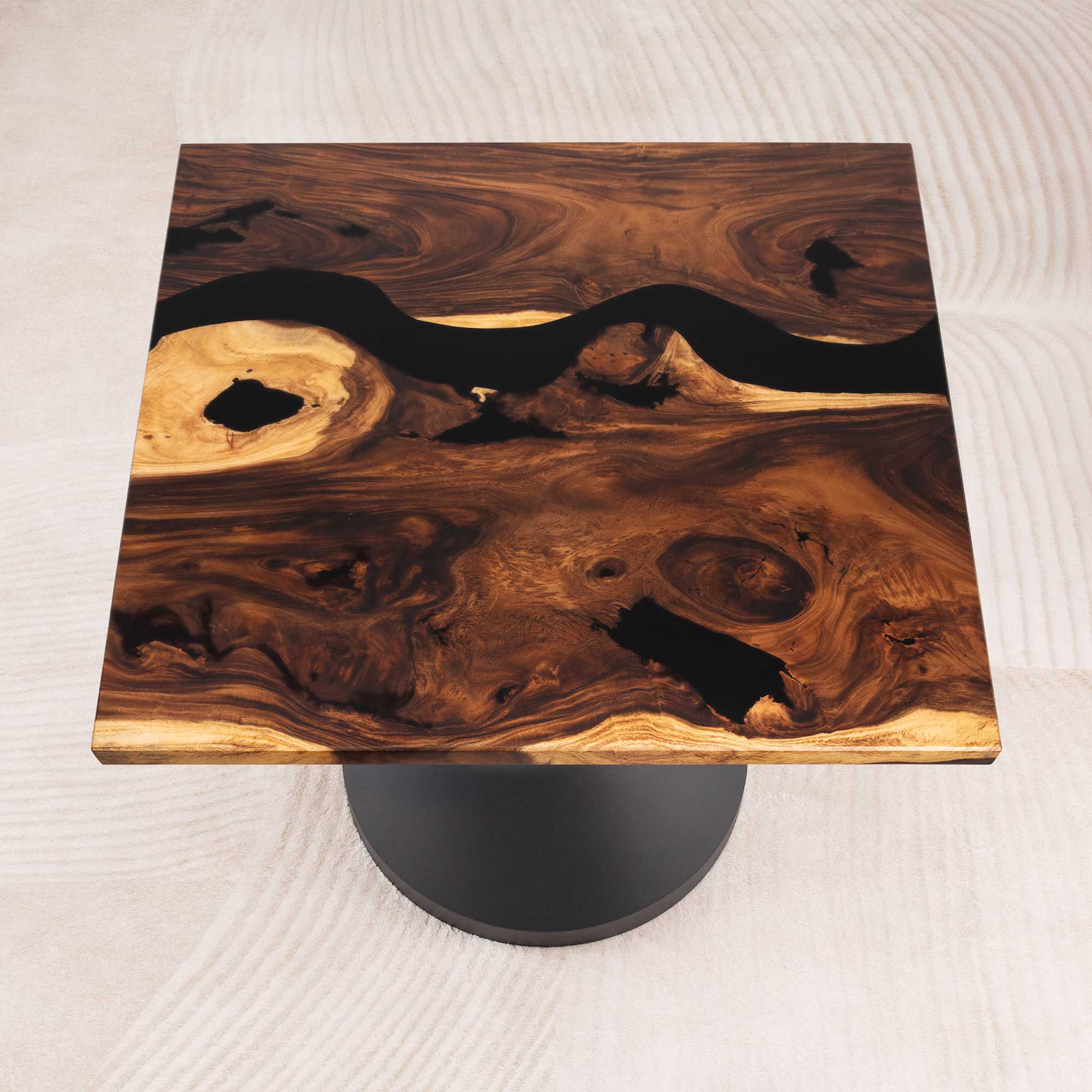 Whether you're browsing our collection of unique epoxy tables for a coffee table, dining table, or end table, our custom epoxy resin creations can meet all your needs. Each of our epoxy tables is a unique work of art, thanks to the natural variations in the selected wood pieces. These epoxy resin tables can be made in various dimensions to match your space and are supported by a high-quality metal base, ensuring superior stability for years.